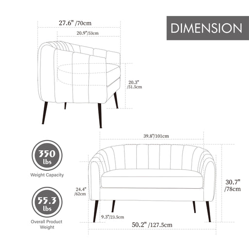 Modern Elegance: This velvet loveseat showcases modern elegance with its unique vertical 3D effect on the armrests, adding texture and sophistica...