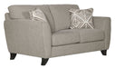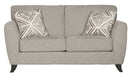 Elevate your living space with our contemporary loveseat, the epitome of modern elegance and comfort. Wrapped in a luxurious soft fabric, this loveseat offers a tactile experience that’s as inviting as it is stylish. The clean lines and sleek design are perfectly complemented by the inclusion of two eye-catching geometric patterned accent pillows, adding a pop of personality to your décor. Supported by wood legs, this loveseat not only exudes sophistication but also promises durability for years to come. Built for comfort, the seats are constructed of individually pocketed coils encased in foam and topped with a layer of cool gel infused memory foam for a long lasting, comfortable and supportive seat. Whether you’re entertaining guests or enjoying a quiet evening in, our contemporary loveseat provides the perfect balance of aesthetics and coziness. Redefine your interior with this statement piece that effortlessly combines form and function.
