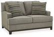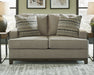 Whether your style is American classic, contemporary or an eclectic mix, this beautifully versatile loveseat is sure to look right at home. Distinctive elements include an exposed rail, designer accent pillows and decadent woven upholstery in a rich neutral shade inspired by tailored menswear.