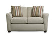 Our Smyrna collection features a contemporary sofa, loveseat, chair, and ottoman, as well as queen, full, and twin sleepers. The sofa boasts a three over three configuration with a channel stitched back over bordered seat cushions and a clean front rail. The modified half-moon arms are slightly flared. The sleeper is available with a standard, Visco, or air mattress.