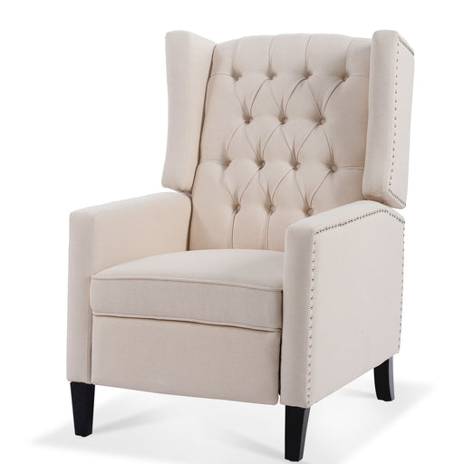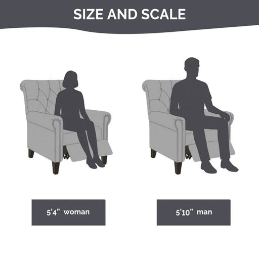 Contemporary Design: This recliner blends modern elegance with deep button tufting, rolled armrests, turned legs, and sleek nailhead trim for a re...