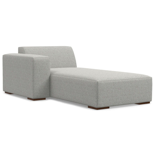 This modern-style left chaise sofa module with a clean, boxy silhouette and a gently sloping back can be used on its own as an asymmetrical chaise...