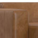 - Upholstered in Caramel Brown Kind Leather, a high-quality, genuine aniline, Brazilian leather made through an environmentally friendly process that minimizes waste and maximizes the natural color and grain of the leather.