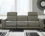 Truly putting high design into recline, this power reclining sofa proves that just because you’re a recliner doesn’t mean you have to look like one. Deceptively beautiful, its ultra clean-lined aesthetic is as cool and contemporary as they come. The low-profile back has a super-swank look. When you need more support for your head and neck, the press of a button engages the Easy View™ power adjustable headrest, designed to let you lean back and still have a primo view of the TV. Ever-so-subtle curves and stunning stitching perfect the aesthetic.