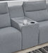 Details Includes 6 modular pieces: left-arm facing power reclining back chaise, power armless recliner, armless chair, console, wedge and right-arm facing power recliner, "Left-arm" and "right-arm" describe the position of the arm when you face the piece, Versatile modular pieces fit together in a variety of configurations, One-touch power control with adjustable positions, Easy View™ adjustable headrest and zero-draw USB port, Zero-draw technology only consumes power when the USB receptacle is in use, Corner-blocked frame with metal reinforced seat, Attached seat and back cushions; high-quality foam cushions wrapped in poly fiber, Polyester upholstery; Next-Gen Nuvella™ is a family-friendly fabric that is soft, easy to clean, stain-resistant and durable, Clean fabric with mild soap and water, let air dry; for stubborn stains, use a solution of 4 oz. bleach to 28 oz. water, Throw pillows with easy-to-remove zippered covers for machine washing; pillows with soft polyfill, Console with plexiglass top and 2 cup holders, Zero wall recliner design requires minimal space between wall and chair back, Power cord included; UL Listed