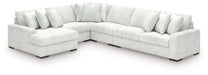 | Details | Includes 5 pieces: left-arm facing corner chaise, 2 armless chairs, wedge and right-arm facing sofa, "Left-arm" and "right-arm" describe the position of the arm when you face the piece, Corner-blocked frame, Loose reversible seat and back cushions, High-density foam cushions wrapped in feather-fiber blend jacket, Accent pillows included, Pillows with feather-fiber blend, Polyester upholstery, Exposed feet with faux wood finish, Platform foundation system resists sagging 3x better than spring system after 20,000 testing cycles by providing more even support, Smooth platform foundation maintains tight, wrinkle-free look without dips or sags that can occur over time with sinuous spring foundations | |