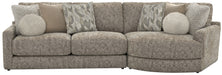 Turner features an assortment of individual pieces, including an interesting Piano Wedge with a curved seat front. This stationary Modular Sectional group features our Cuddler Cushion for ultimate comfort and is available in one color: Mushroom.