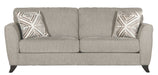 Elevate your living space with our contemporary 2-seat sofa, the epitome of modern elegance and comfort. Wrapped in a luxurious soft chenille fabric, this sofa offers a tactile experience that’s as inviting as it is stylish. The clean lines and sleek design are perfectly complemented by the inclusion of two eye-catching geometric patterned accent pillows, adding a pop of personality to your décor. Supported by wood legs, this sofa not only exudes sophistication but also promises durability for years to come. Built for comfort, the seats are constructed of individually pocketed coils encased in foam and topped with a layer of cool gel infused memory foam for a long lasting, comfortable and supportive seat. Whether you’re entertaining guests or enjoying a quiet evening in, our contemporary 2-seat sofa provides the perfect balance of aesthetics and coziness. Redefine your interior with this statement piece that effortlessly combines form and function.