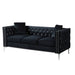 Modern Sofa Jeweled Buttons Tufted Square Arm Couch, 2 Pillows Included - Black