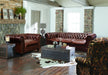 Our Rondell collection is our interpretation of the iconic English Chesterfield. This classic style features a beautifully tufted back and inside arm, simple front rail with button accents, a large rolled shelter arm accented with optional petite antique bronze nail heads, and an intricate turned wooden leg. We offer a sofa, love, chair, and ottoman covered in your choice of fabric or leather.