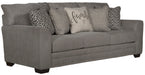 The contemporary farmhouse styling of the Cutler Sofa brings comfort and style to any room. Built for comfort, the seats are constructed of individually pocketed coils encased in foam and topped with a layer of cool gel infused memory foam for a long lasting, comfortable and supportive seat. Covered in a soft, durable 100% polyester body fabric in a light gray color and accented with coordinating designer toss pillows, the Cutler brings style to any room. The look is completed with pewter finished nailhead accents along the base.
