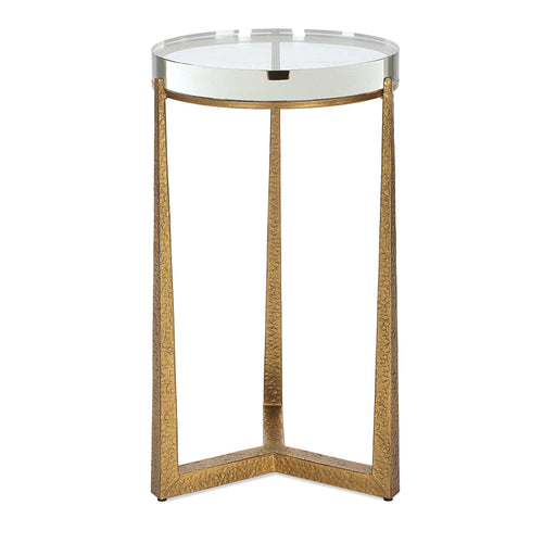 This Elegant Accent Table Adds A Touch Of Luxury To Any Room. The Textured Antique Gold Finished Iron Legs Perfectly Support And Accentuate The Thi...