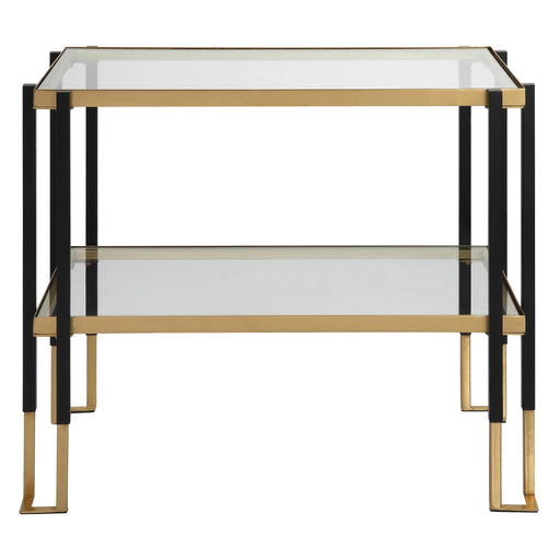 Featuring A Clean Lined Solid Iron Frame, This Contemporary Table Is Finished In A Two-toned Matte Black And Gold Leaf. Has Two Tempered Glass Shel...