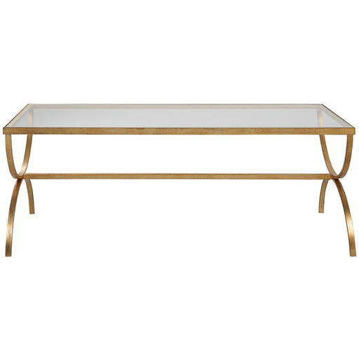 Gracefully Arched Hand Forged Iron Finished In Heavily Antiqued Gold Leaf. Top Is Clear Beveled Tempered Glass.Product Features Uttermost's Coffee ...
