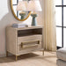 Showcasing A Fresh Contemporary Look, The Alessia Side Table Exhibits A Light Oak Veneer And Solids Adding A Touch Of Brightness To Any Room. Its Stylish Appeal Is Elevated With Brushed Brass Plated Stainless Steel Hardware And Legs, With Two Storage Drawers.