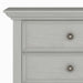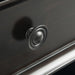 • Traditional design includes tapered legs, molded crown edged table top, panel framed drawer fronts and bronze round decorative pulls