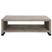 This Casual Coffee Table Provides Ample Display Space And Creates A Rustic Feel With Its Natural Wood Finish And Intricate Carved Details, Highlighted By A White Washed Glaze. Steel Feet Are Finished In A Natural Aged Black.