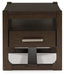 | Details | Made with hardwood solids, hickory veneer and MDF substrate, Dark brown wood-tone finish, Bar pull with polished pewter-tone finish, Single smooth-gliding drawer, Assembly required | |