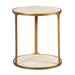 The Warm Tones Of The Clench Side Table Are The Perfect Accent To Any Modern Space. With A Rich Antique Brass Cast Aluminum Framework Accented By Beige Travertine Shelves. Due To The Nature Of Natural Stone, Every Piece Will Vary Slightly Ensuring Yours Is Unique.