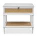 This Side Table, Crafted From Mindi Wood In A White Finish, Showcases Natural Rattan Cane Webbing On The Drawer Front And Lower Shelf. It Is Beautifully Accented With Bronze Hardware, Adding A Touch Of Contemporary Elegance To Its Design.