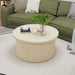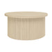 - Modern Design: Features a round shape with unique vertical wood grain stripes, offering a chic and stylish addition to your living room.