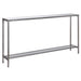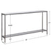 Classic And Minimalistic, This Narrow Console Table In Steel Is Finished With A Streamlined Rustic, Inset With A Beveled Mirrored Top, And Gallery Shelf In Clear Glass.