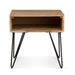 - Features one (1) open compartment for storage and four (4) black iron hairpin legs