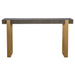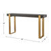 Contemporary In Style, This Console Features A Striking Diamond Ash Veneer Top In A Dark Walnut Stain With Light Gray Glazing. The Iron Strap Legs Are Finished In A Warm Brushed Brass.