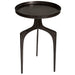 Providing An Organic Global Feel, This Cast Aluminum Accent Table Features A Shapely Curved Base And Round Top, Finished In A Plated Antique Bronze.
