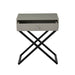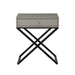 • Organize and declutter with the Koda side table. Place this table as a nightstand to your bed or as an end table in your living room. The one drawer with silver knob provides storage space for your everyday necessities. The finely crafted tabletop works perfectly for your lamp, picture frames, and any other decorative items for display. The MDF tabletop has a tempered glass for a contrasting material. The base is not only designed with an attractive black cross leg, but also solidly built with sturdy metal legs. Available in other colors that will complement your home's specific decor.
