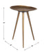 This Unique Accent Table Is Made From Cast Aluminum In An Antique Brass Finish. The Three Slender Legs Extending Outward Give The Table Its Sturdy Tripod Base Supporting The Lily Pad Shape Top.