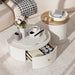 Modern Round Coffee Table (Set of 2), 360 Degree Rotatable Flower Shaped Top With 2 Drawers, Top Circle Side Table End Table With Glass For Living Room - Off White