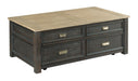 The Saddletree collection includes a round cocktail table, rectangular cocktail table, end table, chairside table, and sofa table.