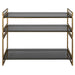 A Functional Accent That Allows For Creativity As Entryway Piece Or Even As A Bar. Features A Striking Combination Of Smoked Gray Glass With Geometric Iron Supports Finished In Lightly Antiqued Gold.