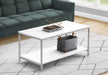 - Stylish Design: Enhance your living room with this modern cocktail table, featuring a two-tier laminate finish complemented by a striking metal leg base.