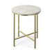 - Hand-finished powder-coated metal base with a Gold finish and White Marble tabletop.