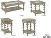 The Tigbee collection includes a rectangular cocktail table, rectangular end table, chairside table, and round table.