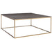 Inspired By Modern Styling, This Coffee Table Features A Beveled Faux Shagreen Wrapped Top In Charcoal Gray Paired With A Sleek Stainless Steel Base Finished In Brushed Brass.