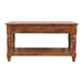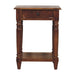 • Turned legs Drawer Table - Classic elegance meets functional design in this beautifully handcrafted table, made from 100% Solid Mango Wood in a rich finish. Featuring gracefully turned legs, a single compact drawer with a brass knob for discreet storage, and a lower shelf for added convenience, this piece blends traditional craftsmanship with modern practicality. Its timeless appeal makes it a perfect addition to bedrooms, living spaces, or hallways adding warmth and sophistication to any home. Sturdy, sustainable, and stylish, this side table is a testament to fine woodworking and refined aesthetics.