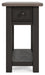 | Details | Made of wood, white oak veneers and engineered wood, Weathered grayish brown top, Textured wire brushed base in a black rub-through finish, Chairside end table features plank-styled top, Smooth-gliding drawer perfect for holding remotes and more, Integrated 110V power supply with dual USB charging ports, Black faceted hardware, Assembly required | |