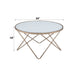 - Striking Metal Base: Its overlapped "V" shape metal base is made from round metal tubing with a champagne finish, exuding elegance and modernity.