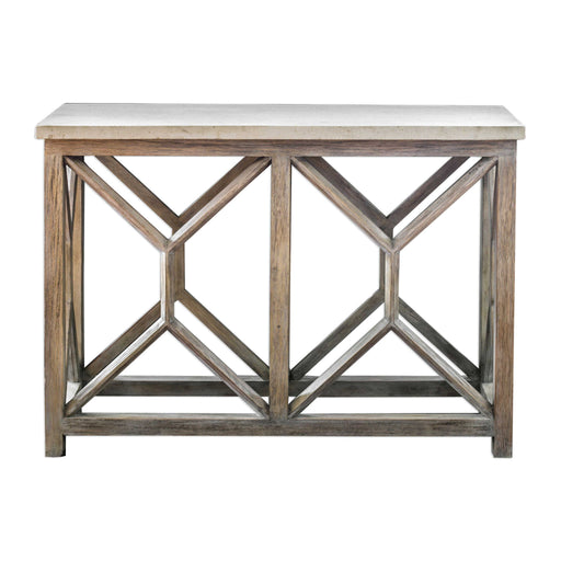 Handcrafted From Solid Mixed Woods With An Natural Ivory Limestone Top, On A Geometric Base Finished In A Warm Oatmeal Wash. True To The Characteri...
