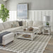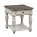 The perfect blend of European design with the Magnolia Manor. Crafted of poplar solids with oak and birch veneers, this piece features a weathered top, one fully stained interior drawer full extension drawer in each table, fancy face top, wood framed drawer fronts, bead molding, canted corners, faceted turned legs, cocktail offers casters that make rearranging effortless, antique pewter knob hardware and a bottom shelf for additional storage. Warm finishes and artistic distressing along with grand scale create a piece to be passed to generations. Kit consists of one cocktail table and two end tables.