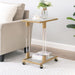 - Modern End Table: Made of tempered glass and golden metal frame with acrylic studdle. Complements furniture and brightens room.