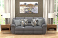 Trifecta - Power Sofa With 3 Recliners And Drop Down Table - Smoke