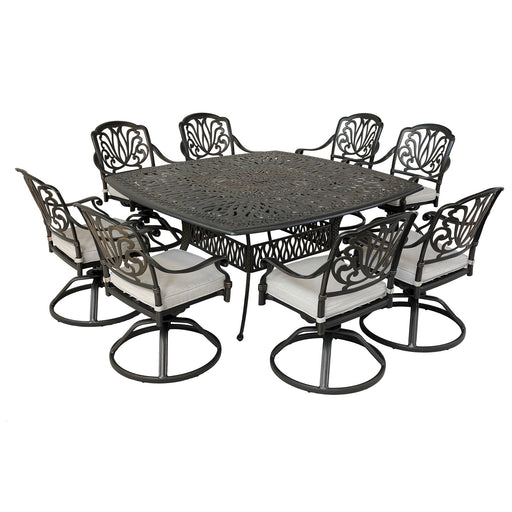 Square 8 Person 64" Long Aluminum Dining Set With Cushions