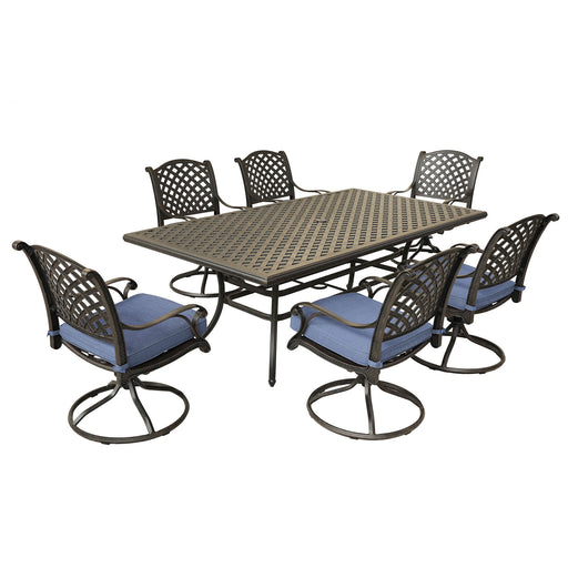 Durable Aluminum Frame: Rust-resistant powder-coated cast aluminum frame with elegant lattice design. Comfortable Sling Chairs: Eight swivel roc...