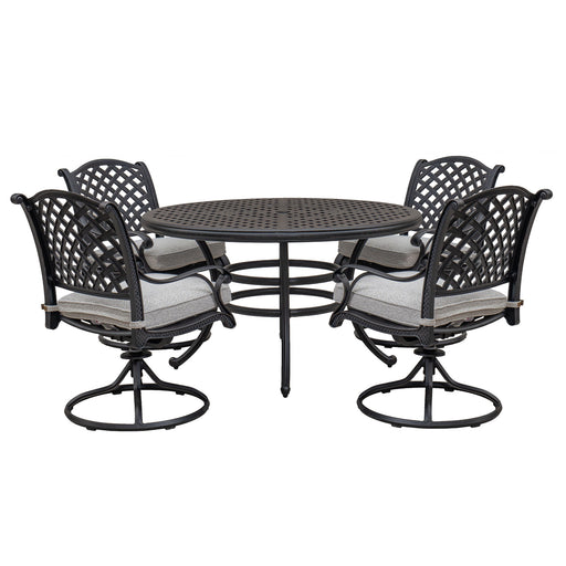 Timeless Elegance: Modern 5-Piece Aluminum Dining Set designed for enduring style and sophistication. Weather-Resistant Craftsmanship: Rust-resi...