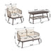 4 Piece Outdoor Patio Furniture Set, Metal Chairs With Woven Rope U Shaped Backrest, Outdoor Conversation Set With Thick Cushions And Coffee Table For Garden, Poolside, Balcony - Brown / Beige