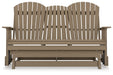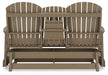 Drift away from everyday worries and into outdoor bliss with this glider loveseat. Dressed in an inviting driftwood hue, the Adirondack-inspired design has a classic feel. It weathers sunny summer days and cozy winter nights with durable MEGA-TUFF® HDPE material. A drop-down console with integrated cup holders keeps refreshments and snacks within easy reach. With the console snapped into the back, this loveseat has even more room for enjoying lazy days in the shade.